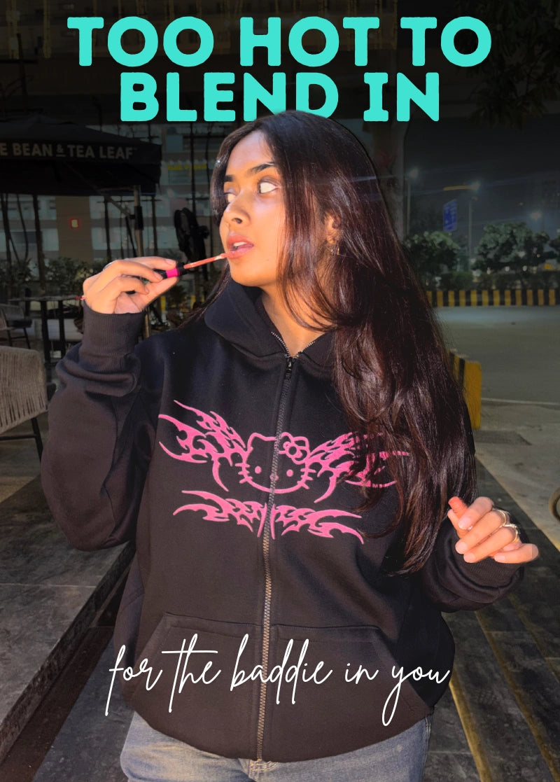 Hello Kitty Pink - Black Zipper Hoodie