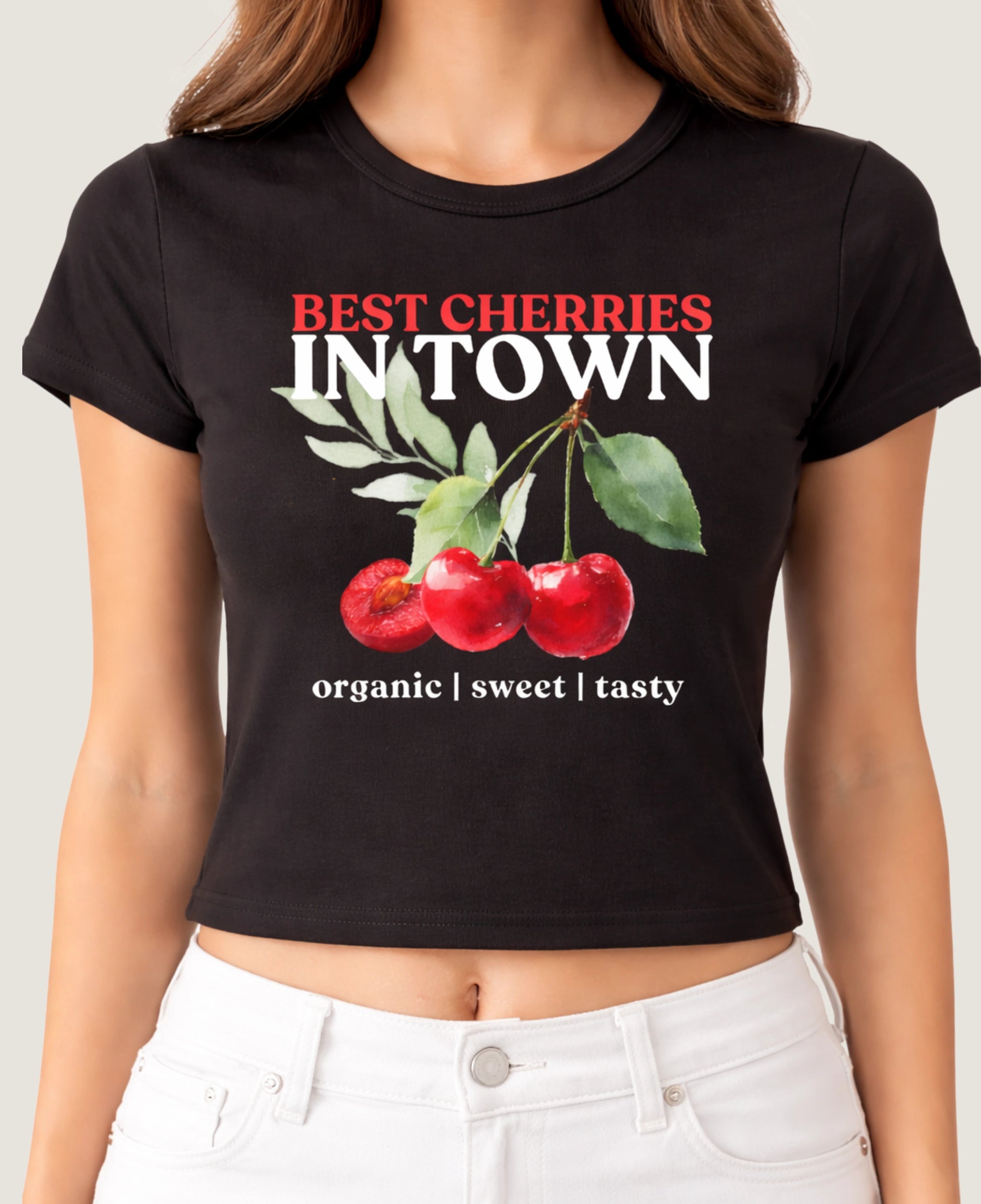 BEST CHERRIES IN TOWN BABY TEE (BLACK)